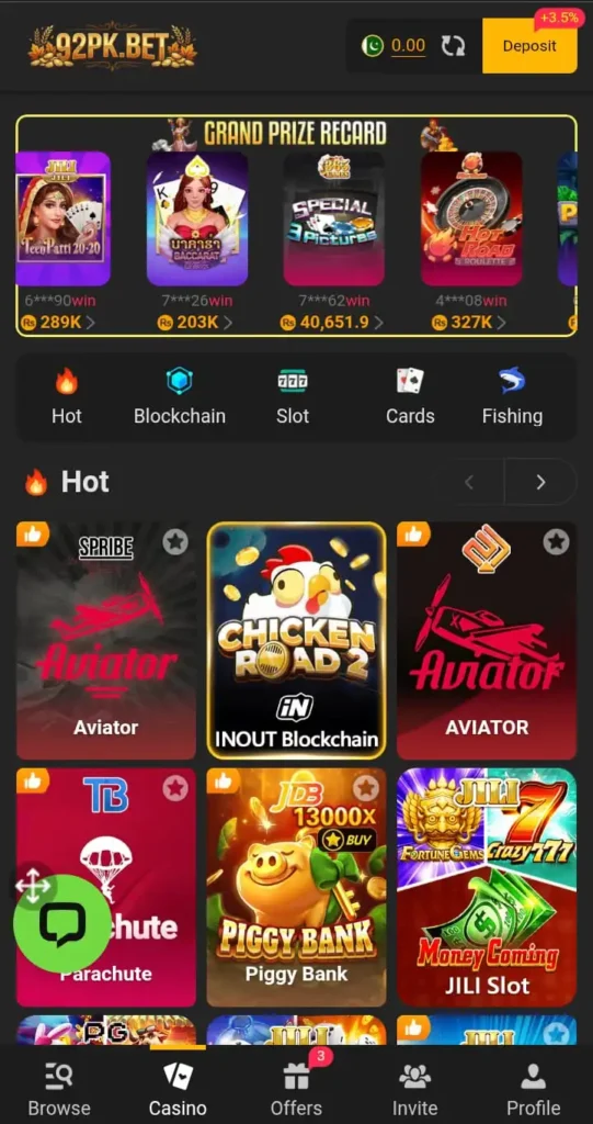 • 92PK Game supports fast deposits and withdrawals via popular Pakistani methods like Easypaisa and JazzCash.