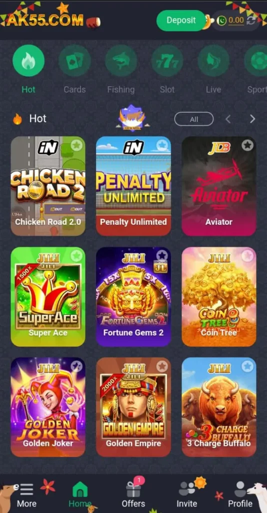 Firstly, AK55 Game offers poker, roulette, and card games.