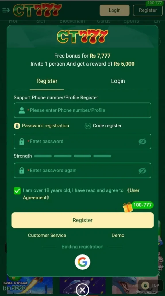 Login and Registration Process Of CT777 Game