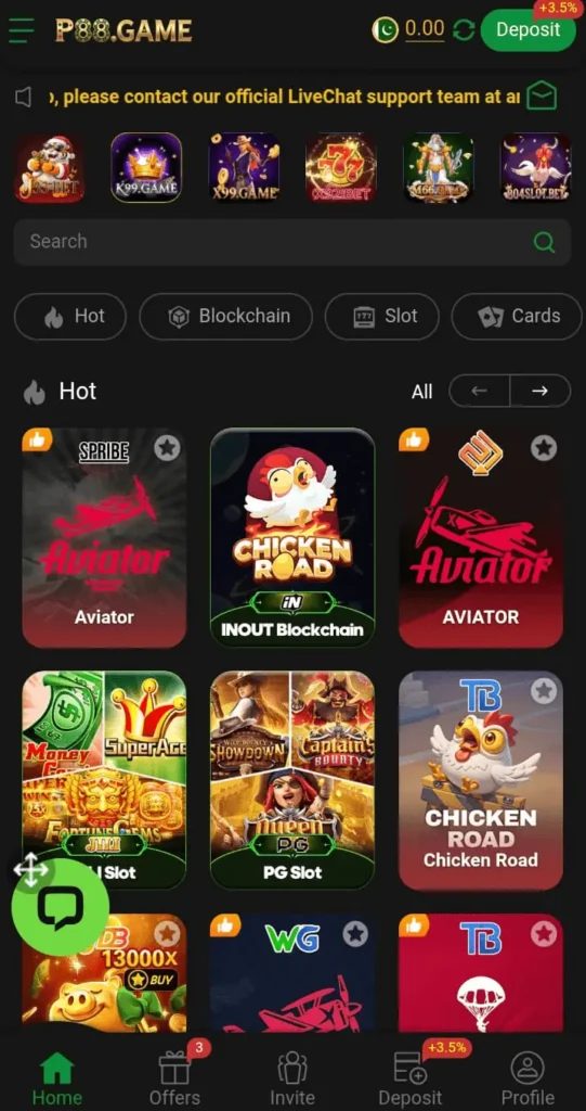 P88 Game supports bank transfer, Easypaisa, and JazzCash for fast deposits and withdrawals.