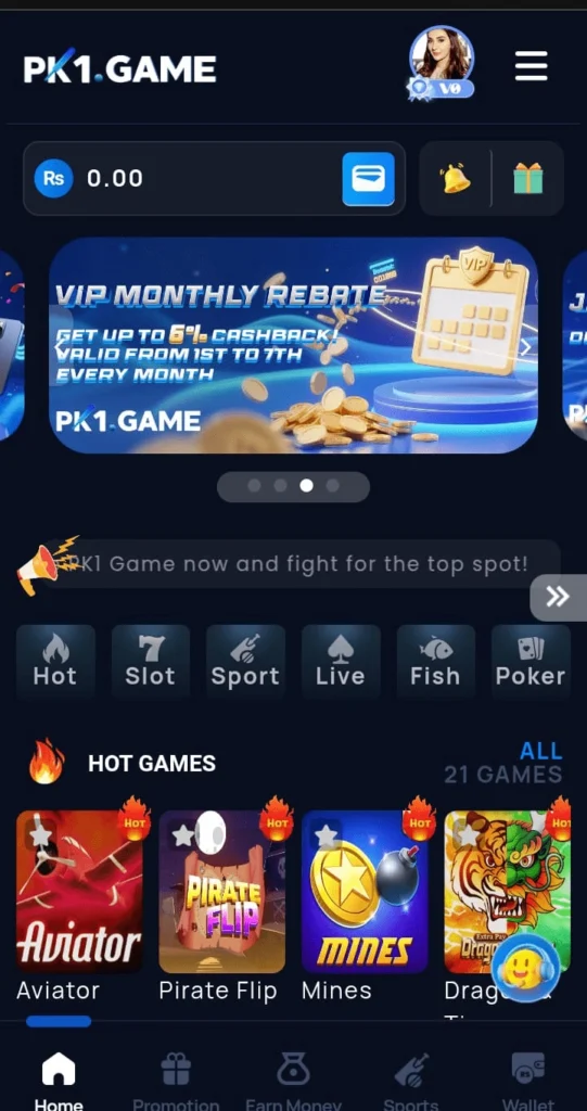 PK1 Game features a clean and simple design. Navigation is easy, and all options are clearly displayed, helping new users quickly understand the platform.