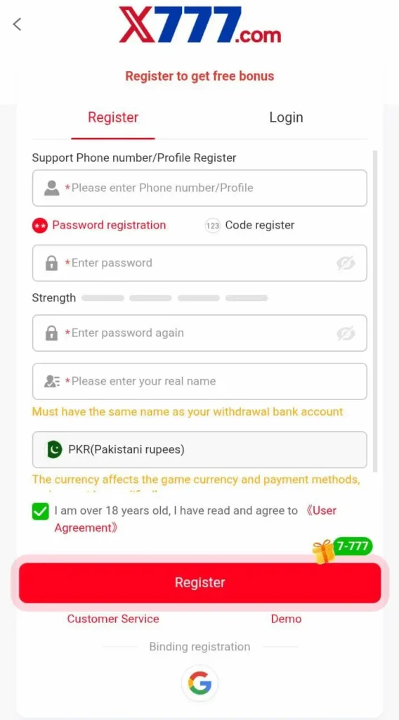 How to Register Account Of X777 Game?